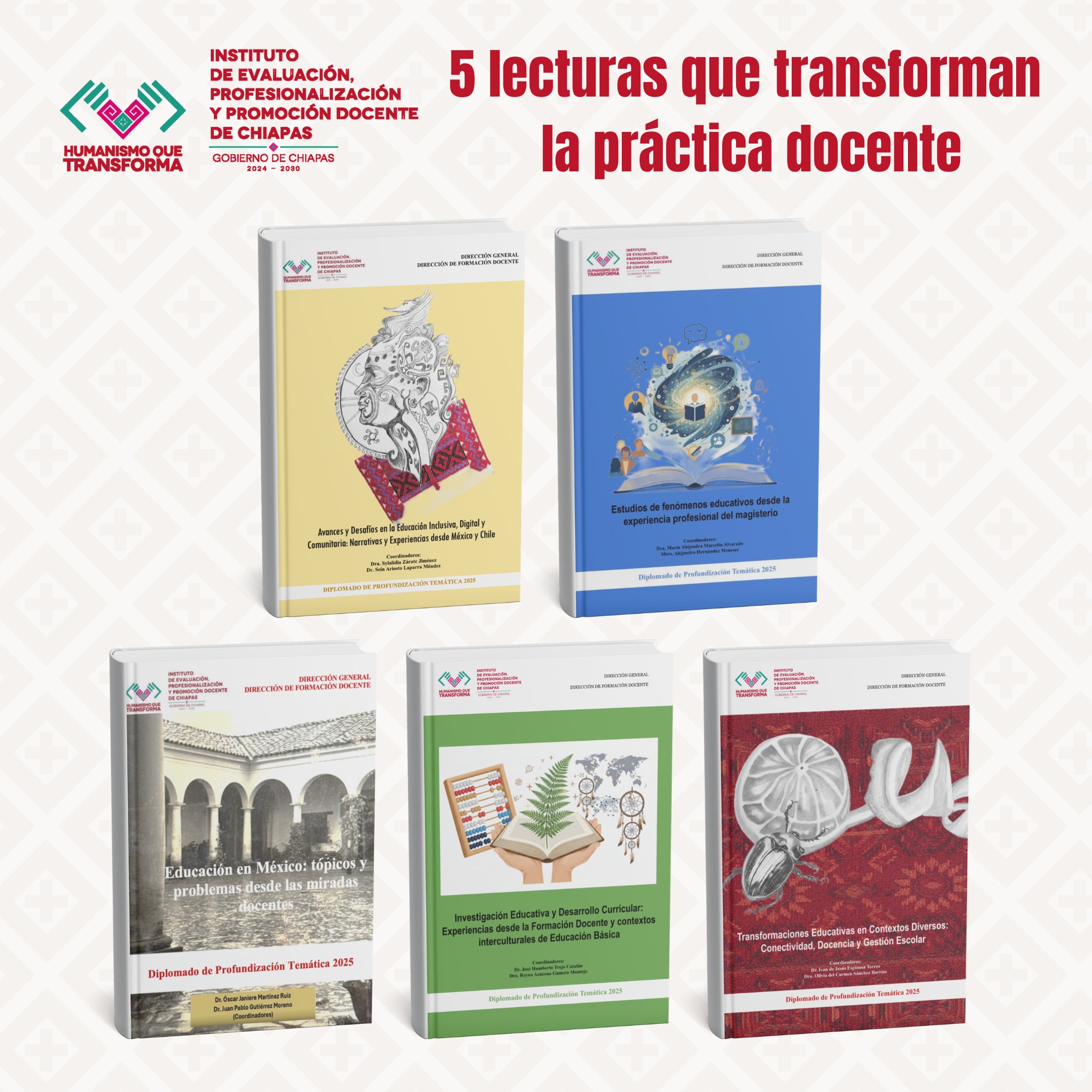📚 El Instituto de Evaluación, Profesionalización y Promoción Docente de Chiapas comparte 5 publicaciones clave del Diplomado de Profundización Temática 2025. Escritos por docentes e investigadores, estos libros abordan los retos más urgentes de la educación hoy.